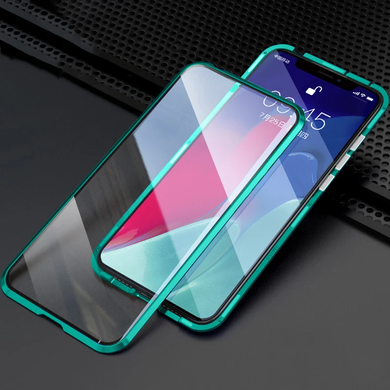 Двухсторонний стеклянный магнитный металлический чехол для iPhone 1...