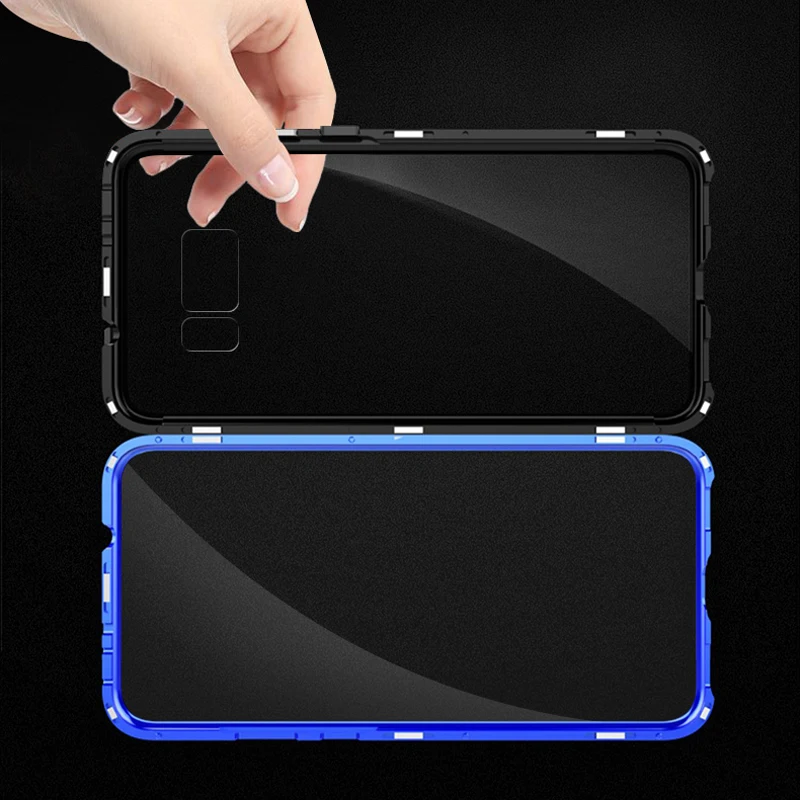 Двухстороннее стекло (спереди + сзади)Металлический магнитный чехол для Samsung Galaxy