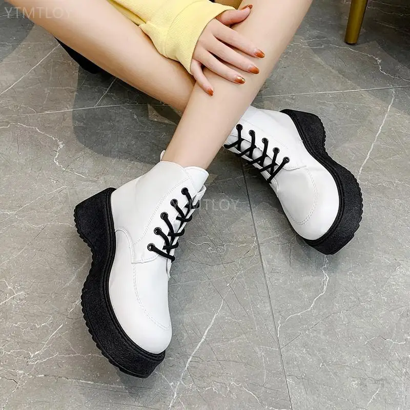 Женские осенние кроссовки, женская обувь на платформе со шнуровкой ...