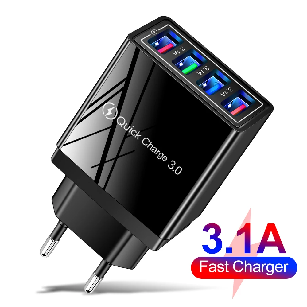 Быстрая зарядка 3,0 USB зарядное устройство для iPhone 13 Xiaomi Samsung Huawei 4 порта зарядное устройство адаптер мульти-USB вилка EU/US настенное зарядное устройство