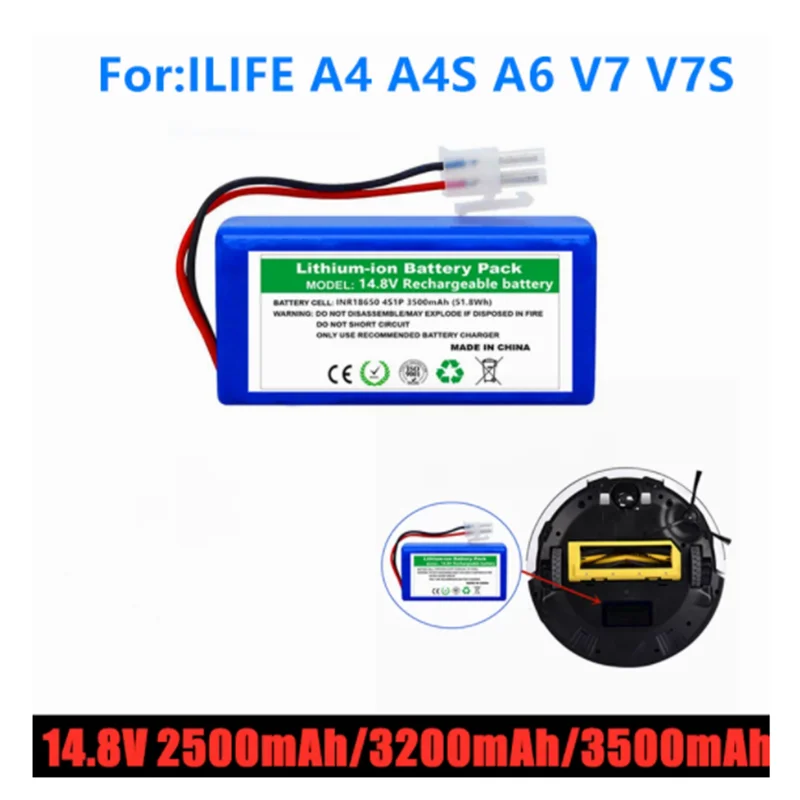 Новинка14,8 в 2500 мАч 3200 мАч 3500 мАч литиевая батарея для ILIFE A4 A4s V7 A6 V7s Plus робот-пылесоса ILife 4S 1P полная емкость