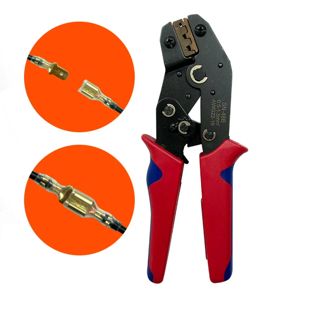Регулируемые Обжимные Щипцы для холодного прессования, обжимные клещи для проводов, обжимные клещи для домашней электроники, режущий зажим для ремонта велосипедовХарактеристика:Подходит для большинства типов полуизолированных и полностью изолированных стыковых разъемов. Действие Ratcheting обеспечивает идеальное нажатие каждый раз.Эргономичная конструкция ручки обеспечивает удобный захват и оснащена саморегулирующимся храповым механизмом для удобства эксплуатации.Широко используется в бытовых приборах, автоматических, аудиосистемах, батареях или перекидных выключателях, быстроразъемных подключениях/отключении, мотоциклах, скутерах, автомобилях, грузовиках, кораблях и т. д. Спецификация:Материал: Высокоуглеродистая Сталь, термополиуретановая изоляционная РезинаРазмер:Длина: 200 мм/7,9 дюймаТип 2.8 внутренний диаметр: 2,8 мм Толщина: 0,25 мм (папа), 0,5 мм (женские) Совместимые провода: 0,5-1 мм (СРГ 22-18)Тип 4.8 внутренний диаметр: 4,8 мм Толщина: 0,35 мм (папа), 0,5 мм (женские) Совместимые провода: 0,7-1,5 мм (20-16)Тип 6 образования легкой пены. 3 Внутренний диаметр: 6,3 мм (папа), 0,8 мм (женские) Совместимые провода: 0,75-1,5 мм (20-16)Тип плоскогубцев: SN48B Примечание:В связи с различиями мониторов и эффектами освещения реальный цвет товара может немного отличаться от цвета на фотографиях. Спасибо!Возможны отклонения в 1-2 см вследствие измерений вручную.