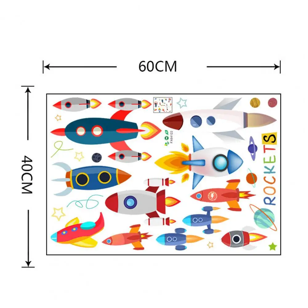 Мультфильм космическая ракета настенные стикеры Детская комната Детский сад Фоновые наклейки декор