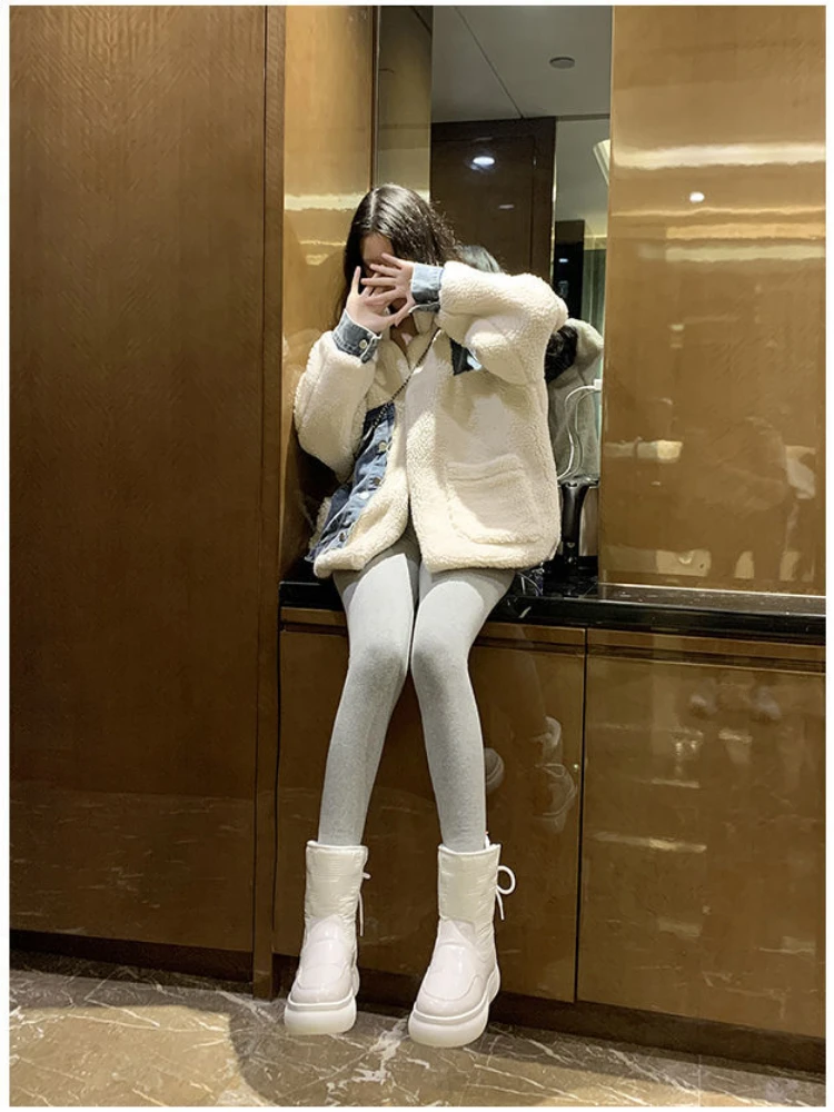 LLUUMIU/зимние ботинки; Женская обувь; Теплые плюшевые повседневные ботинки на меху; Бежевая зимняя обувь на толстой платформе со шнуровкой; Кроссовки; Ботильоны