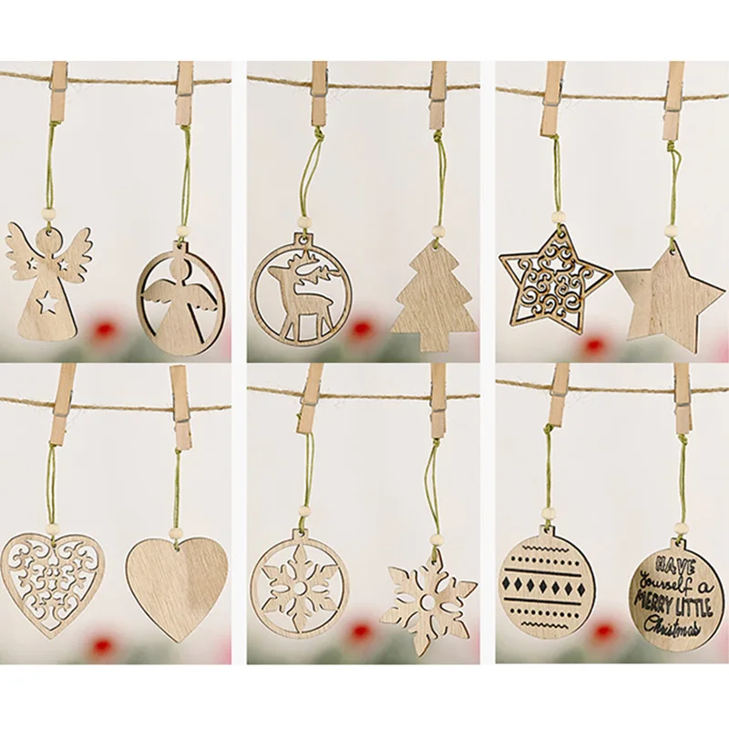 12 шт.корт. Рождественские деревянные подвески, Подвесные Украшения для рождественской елки, деревянные поделки сделай сам для дома, рождественские украшения для новогодней вечеринки