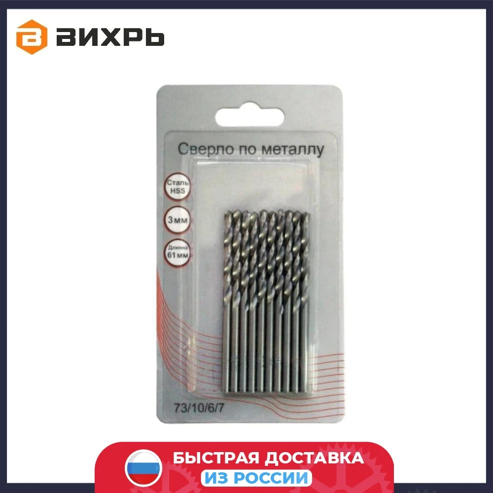 Сверло по металлу 3 мм, HSS (10 шт. в блистере)