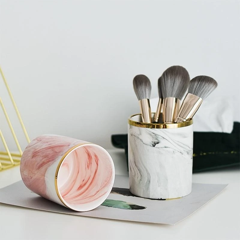 Коробка для хранения косметических кистей, Цилиндрическая Коробка для хранения, помада, кисти, органайзер, керамическая ручка.