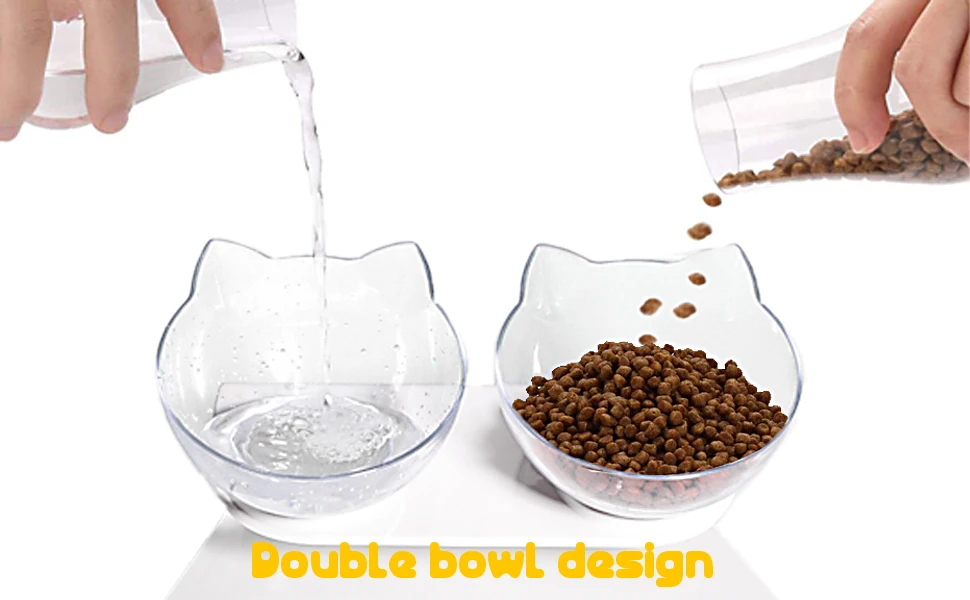 Двойная миска для домашних животных позволяет легко питаться и удобно лизывать ваших кошек или собак.