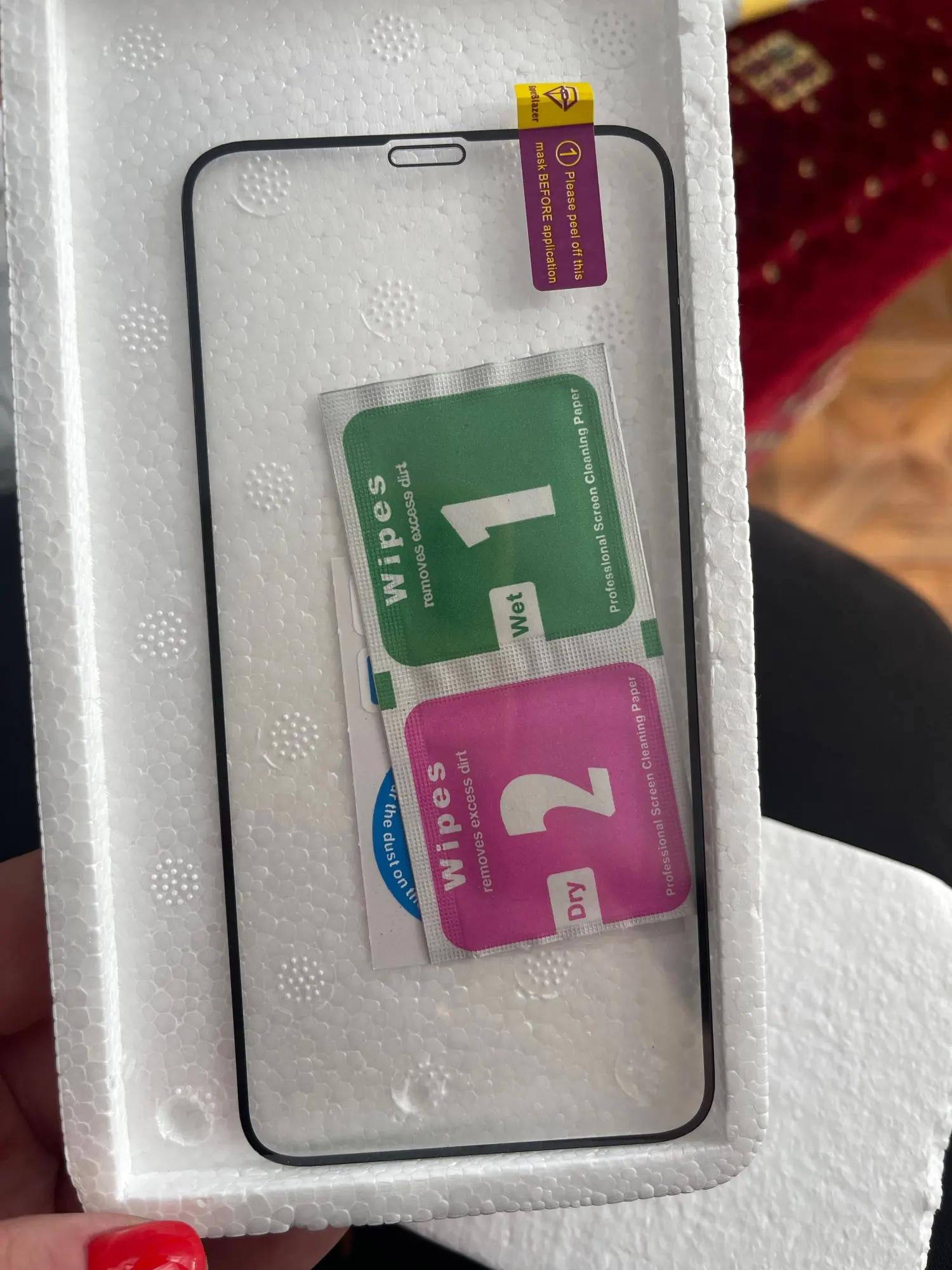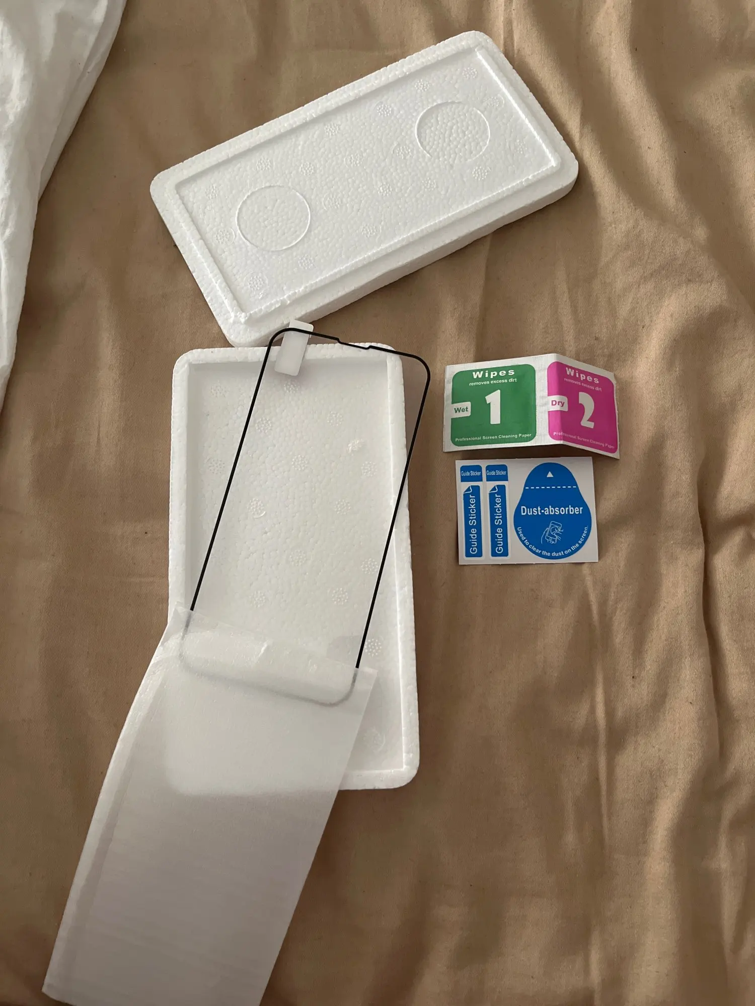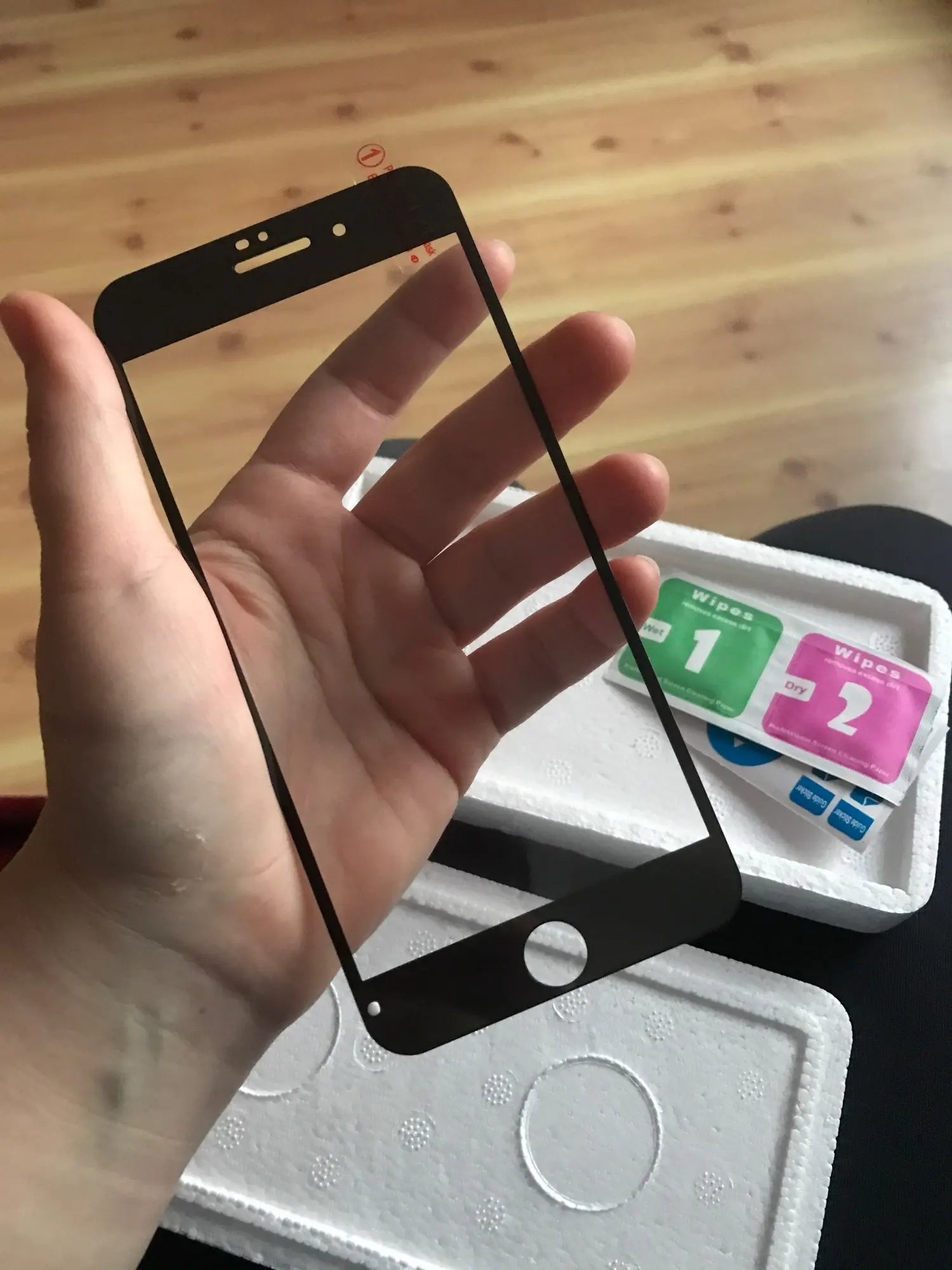 Пришла посылка, хорошо упакована в пенопласт, все целое. В комплекте стекло, салфетки и наклейки от пыли. Стекло пришло намного раньше, чем я ожидала. Расчетное время доставки в Словакию было 8 марта, пришло 8 февраля, все понравилось.