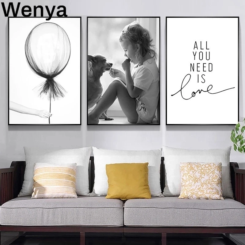 Фон для дивана, украшение для дома, настенная живопись, картина с сердечником, современный черно-белый постер, персонаж с воздушными шарами, буквами Морского Пейзажа