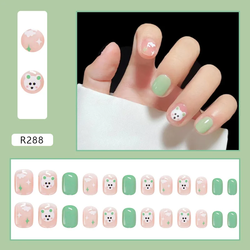 Новинка 2022, 24 шт.компл., милые дизайнерские накладные ногти с рисунком кошки и медведя, французские шпильки, полное покрытие, накладные ногти, инструменты для маникюра и дизайна ногтей