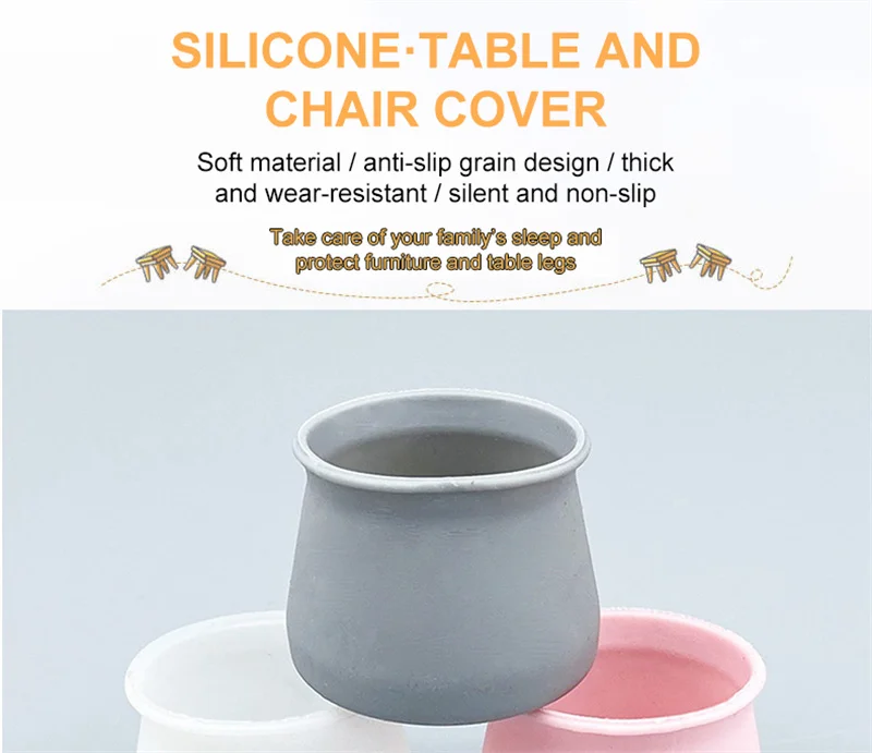 Использование: чехол для стулаКрышка для ножки стула: защитная крышка для ногЦвет: белый, серый, розовыйХарактеристики: Силиконовая накладка на ножки стулаФорма: круглаяРазмеры: L 3 см * 4 см, 1,7 см до 3 см