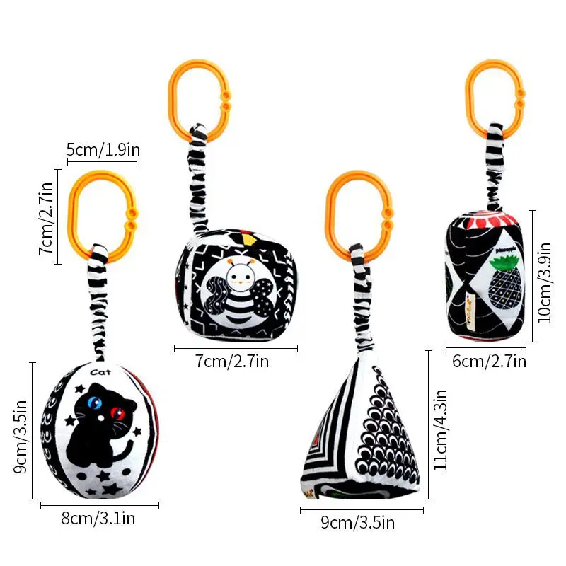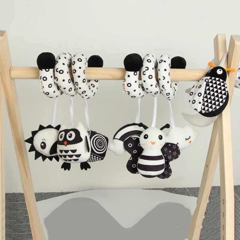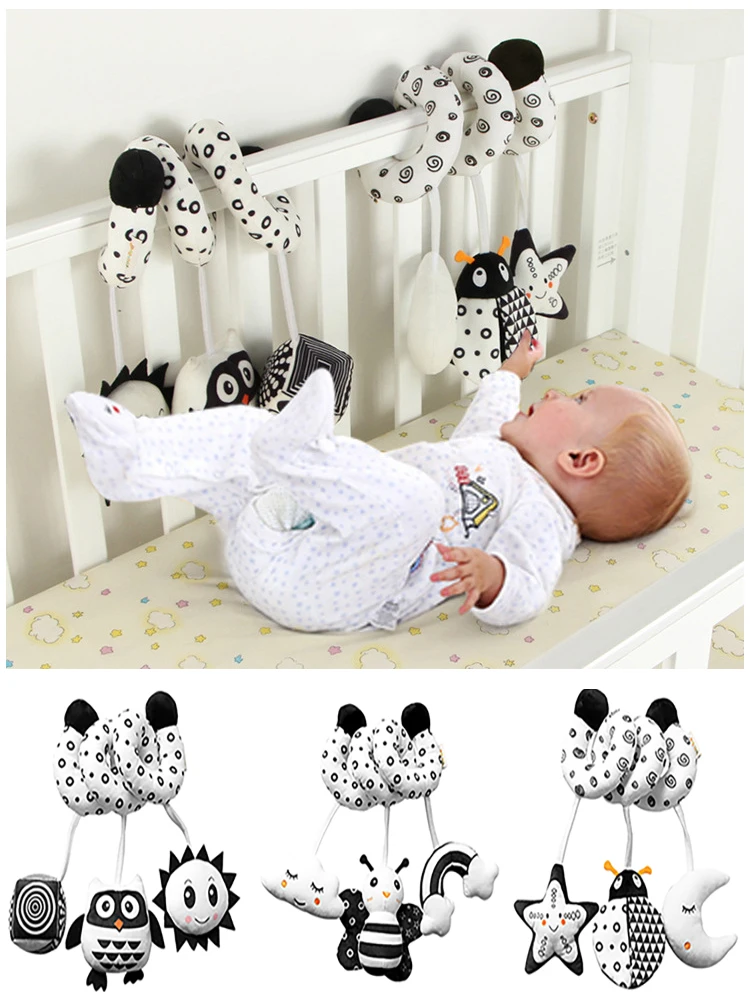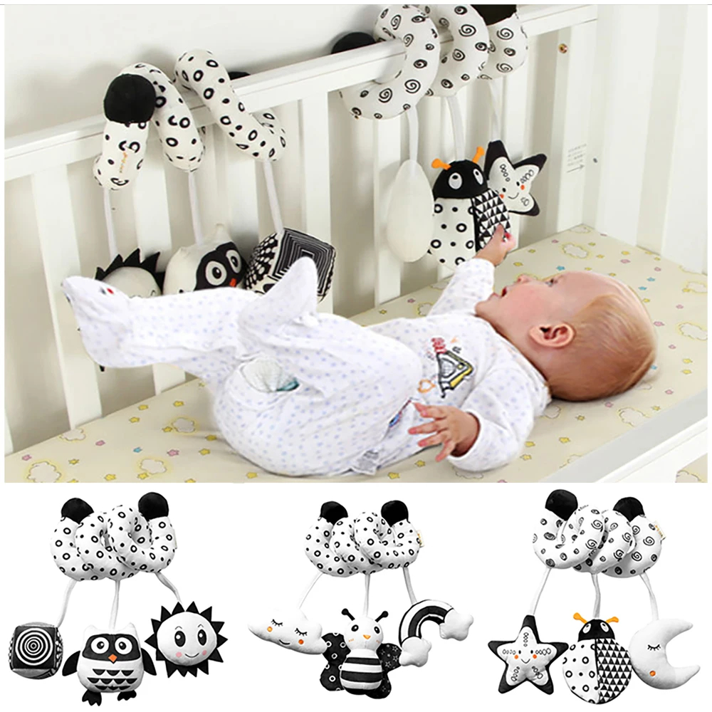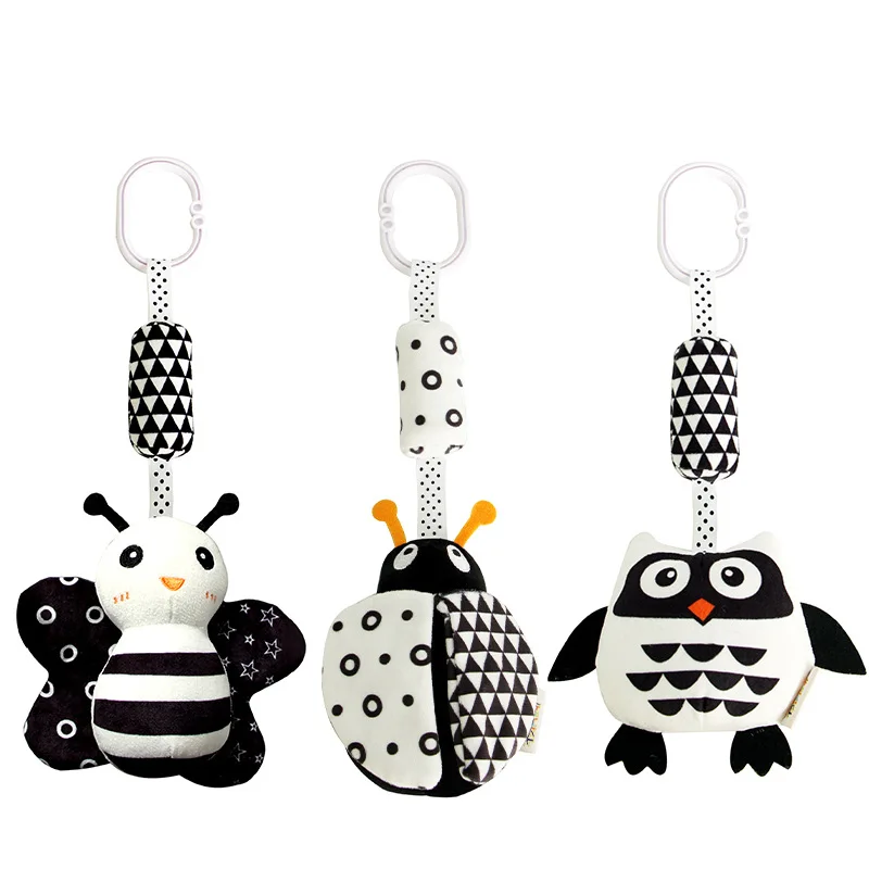 Новинка 2021, мягкие колокольчики для детской кроватки, черно-белая детская погремушка для детской кроватки, пищалка, кукла 0-12 месяцев, игрушки