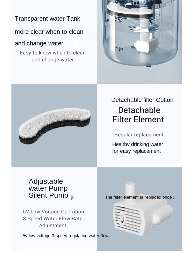 Поилка для домашних животных, питьевой фонтан, прозрачная Бесшумная...