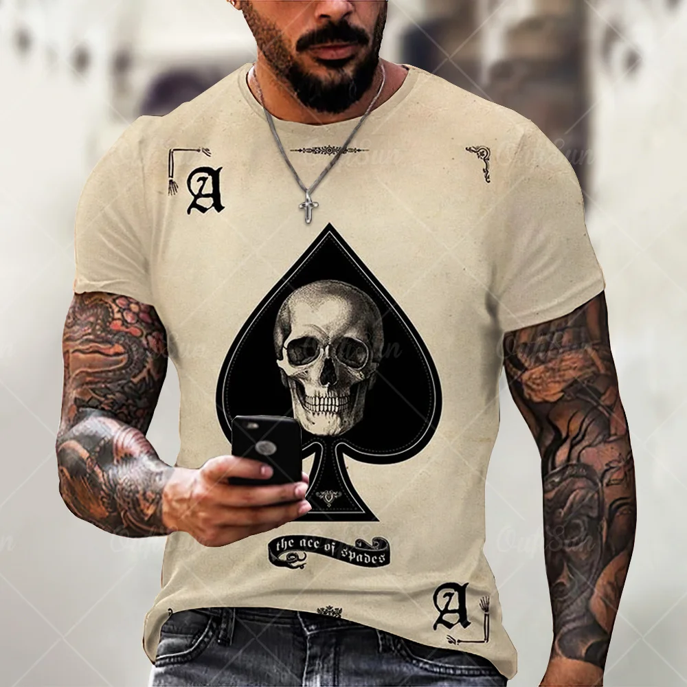 Мужская летняя футболка с 3D-принтом, Ужасный Череп, пика, покер, у...