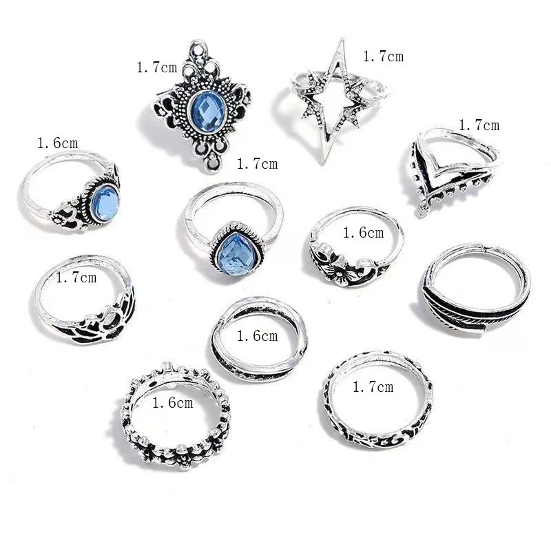 11 шт.компл. ретро набор колец на палец в стиле бохо Корона Звезда ...