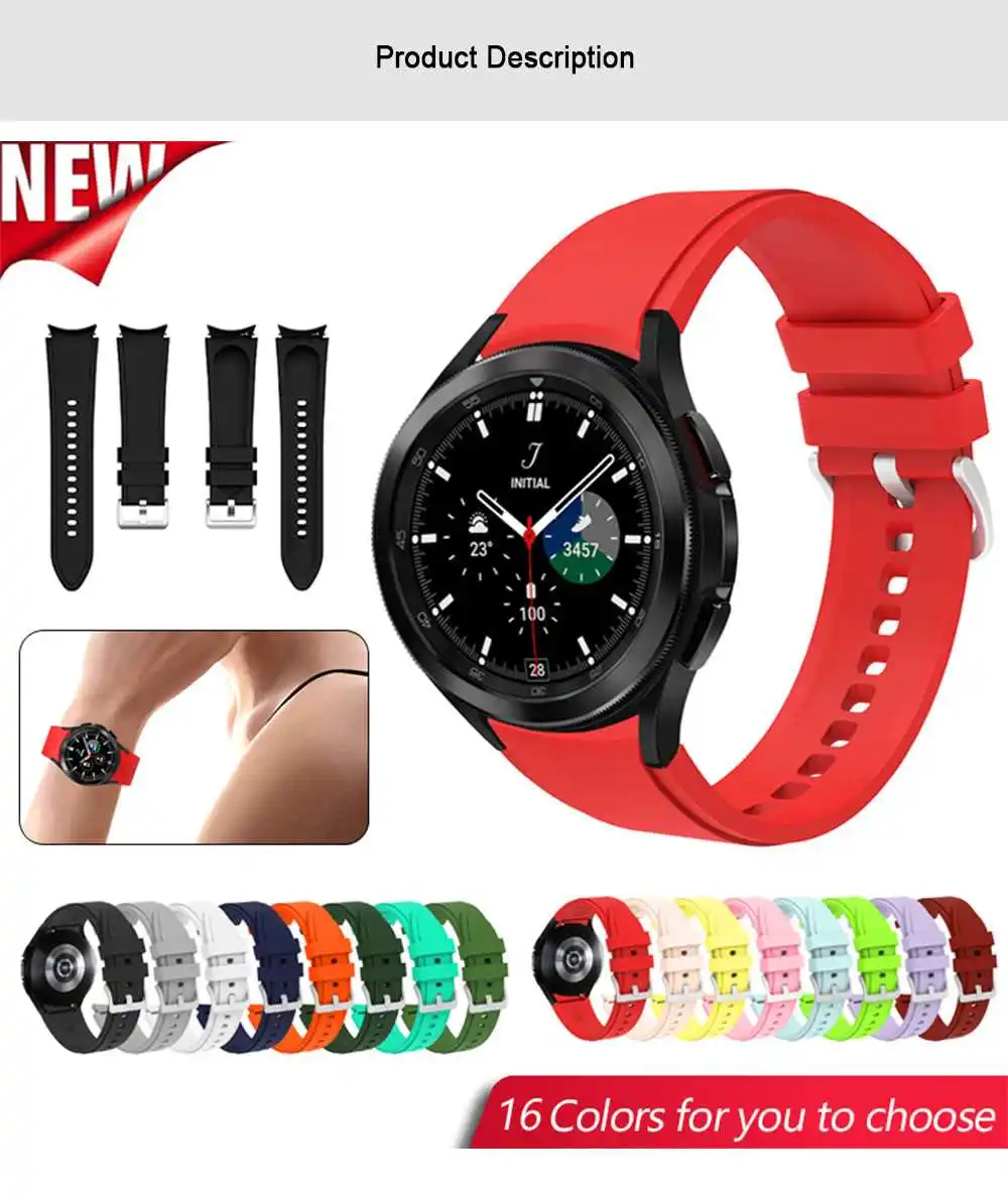 Ремешок силиконовый для Samsung Galaxy Watch 4 Classic, резиновый браслет для смарт-часов, 40 мм 44 мм, 46 мм