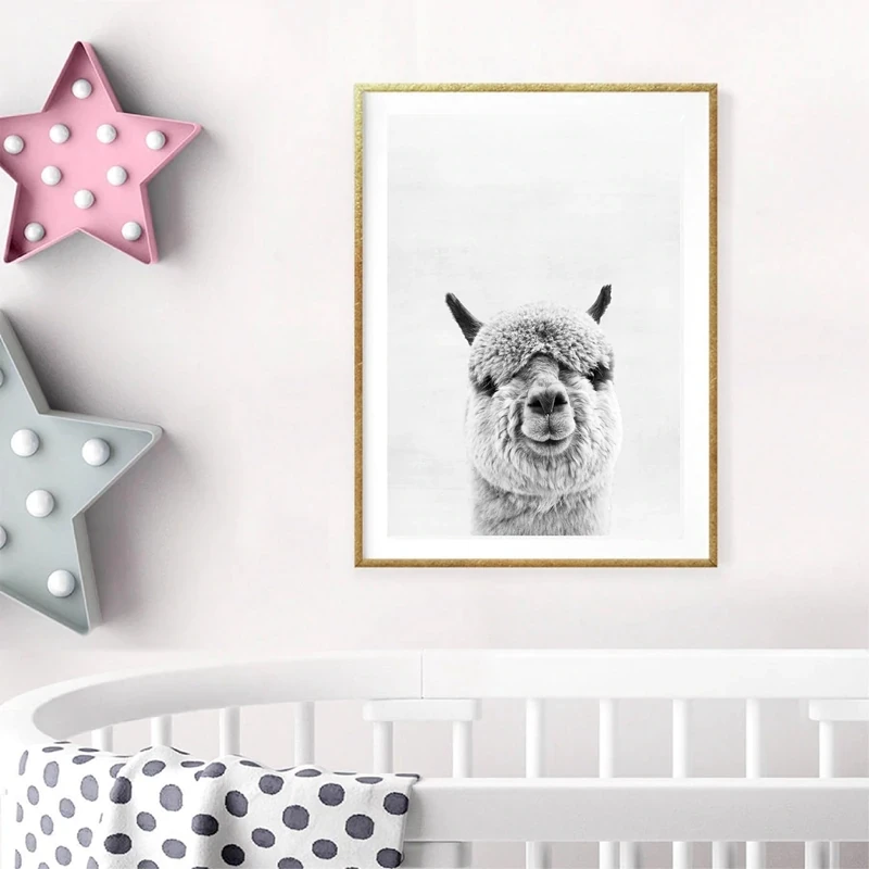Детские животные Альпака настенная Печать на холсте, ферма животные...