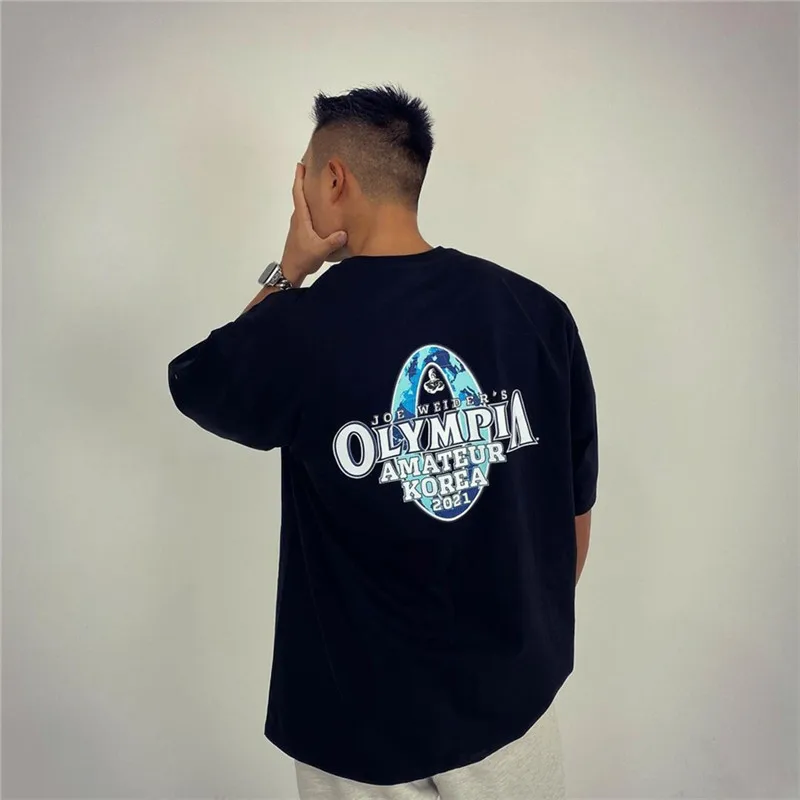 Футболка мужская модная футболка с коротким рукавом Мужская свободная футболка для фитнеса в стиле хип-хоп мужские хлопковые повседневные спортивные топы для бодибилдинга