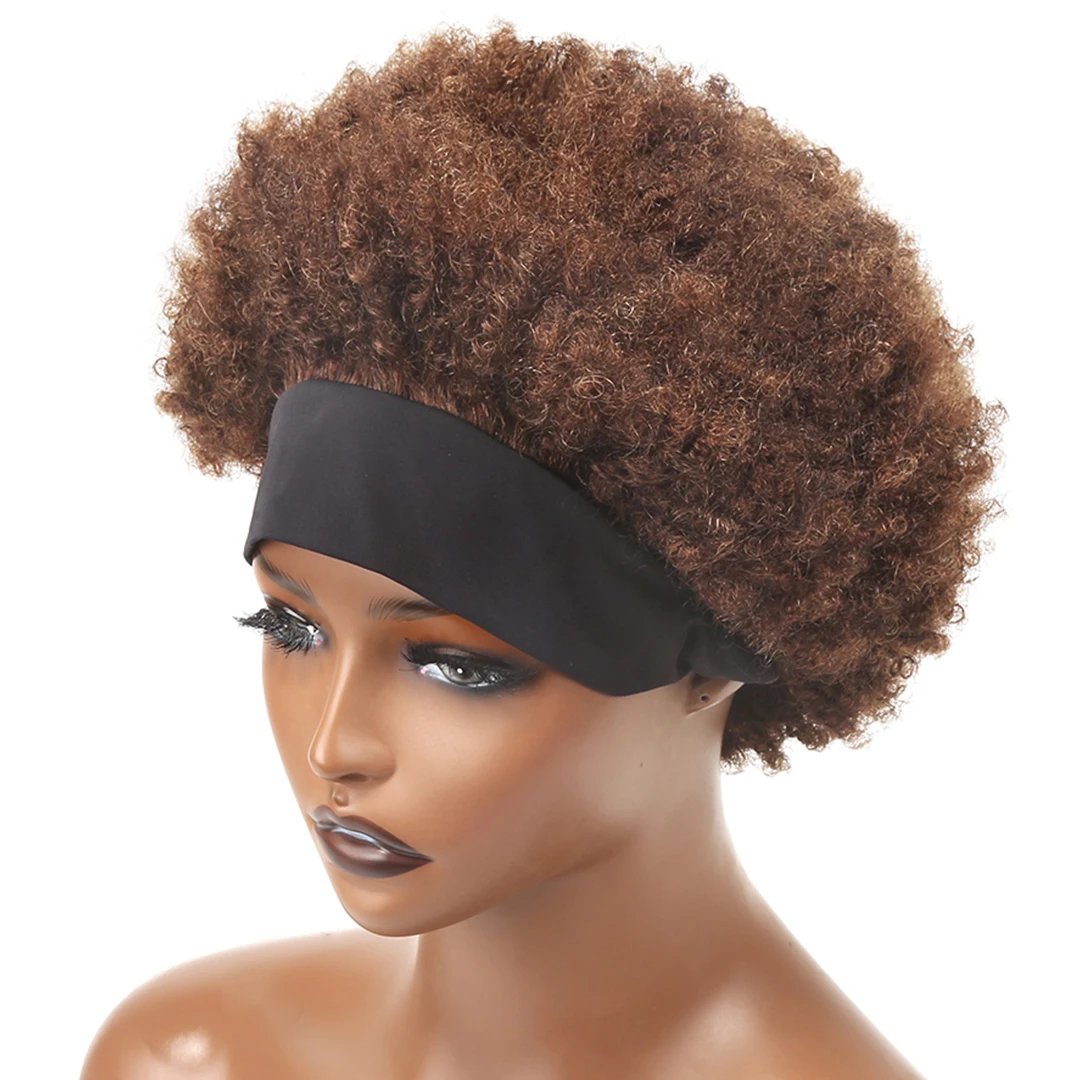 Афро кудрявые вьющиеся человеческие волосы, короткие искусственные волосы, стиль Боб, 200 плотный парик для женщин, полный парик, коричневый цветной человеческий парик