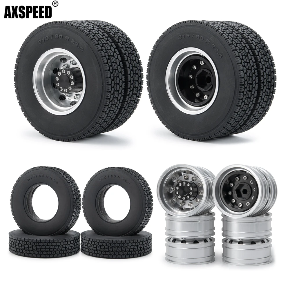 AXSPEED металлические Задние колесные диски с колесной ступицей шириной 22 мм, резиновые шины для 114 Tamiya Радиоуправляемый трейлер, запчасти для трактора, грузовика