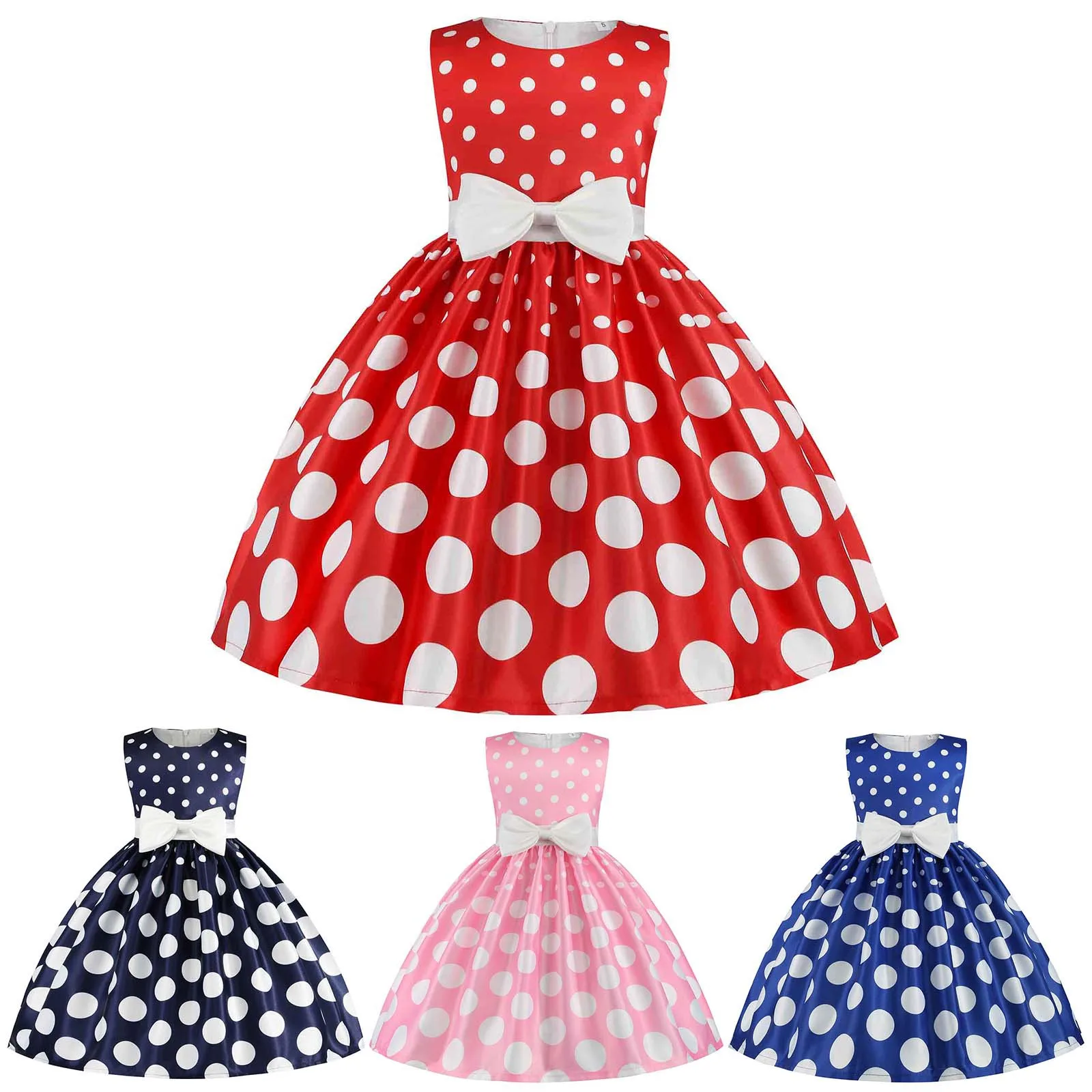 Детская одежда для девочек с бантиками, праздничное платье в горошек, вечерние платья принцессы на день рождения, свадебное платье