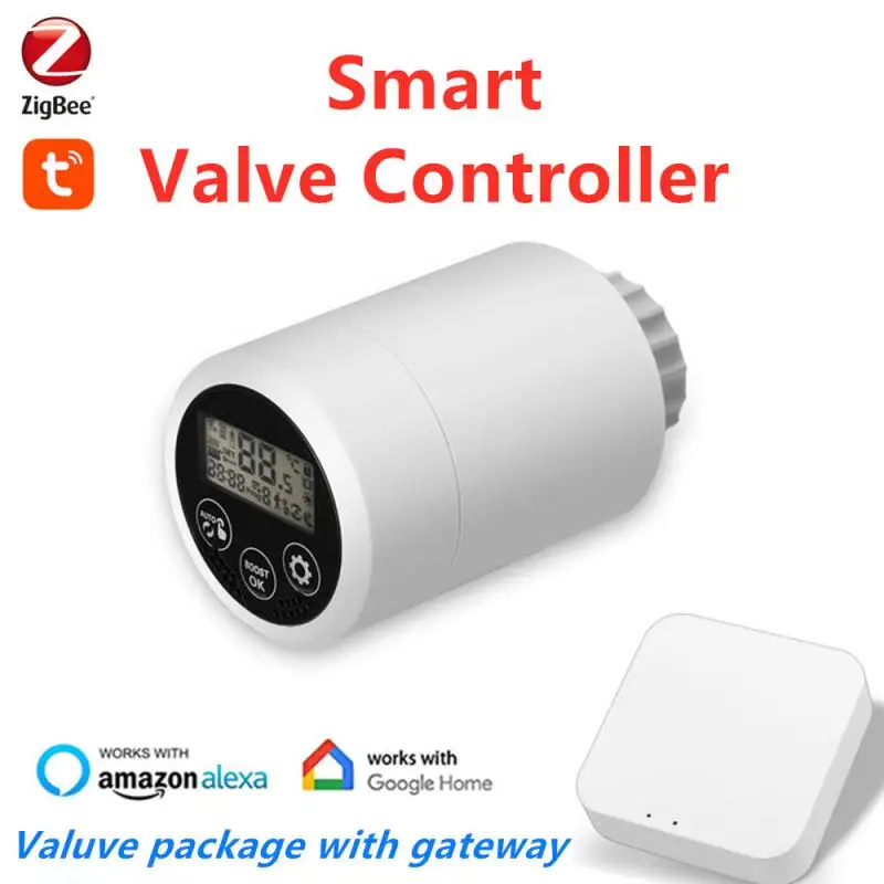 Умный термостат радиатора Tuya ZigBee:Термостат радиатора с ЖК-цифровым дисплеем и простой новой ручкой для простых настроек. Он разработан с двумя секциями аккумуляторов AA, который является специальным клапаном, использующим совместно с нагревательным радиатором для энергосберегающих. Искусственно устанавливаемая температура в помещении, в основном используется в системе напольного отопления для контроля закрытия и открытия трубы.