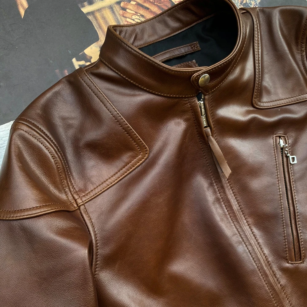 Куртка из натуральной бычьей кожи, Классическая тонкая куртка для е...