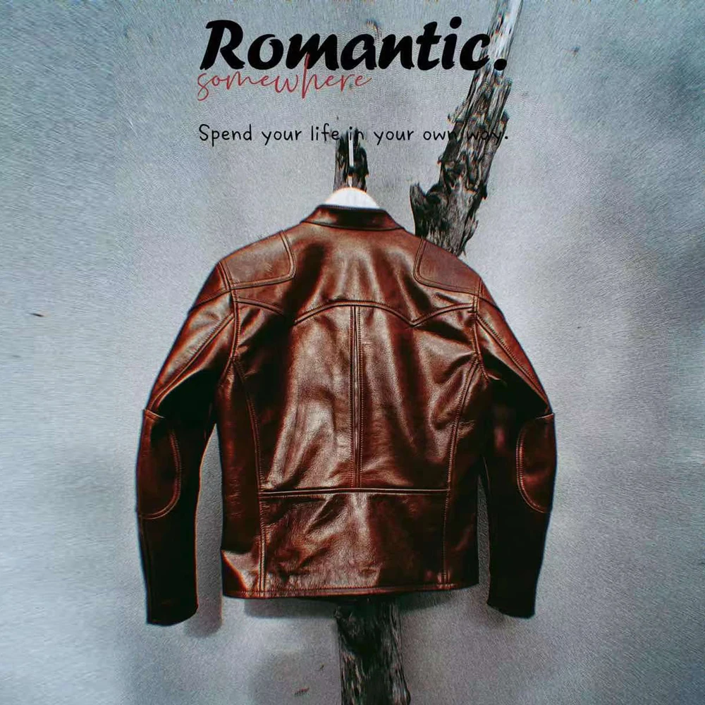 Мужская приталенная куртка SD135 из воловьей кожи, винтажная куртка...