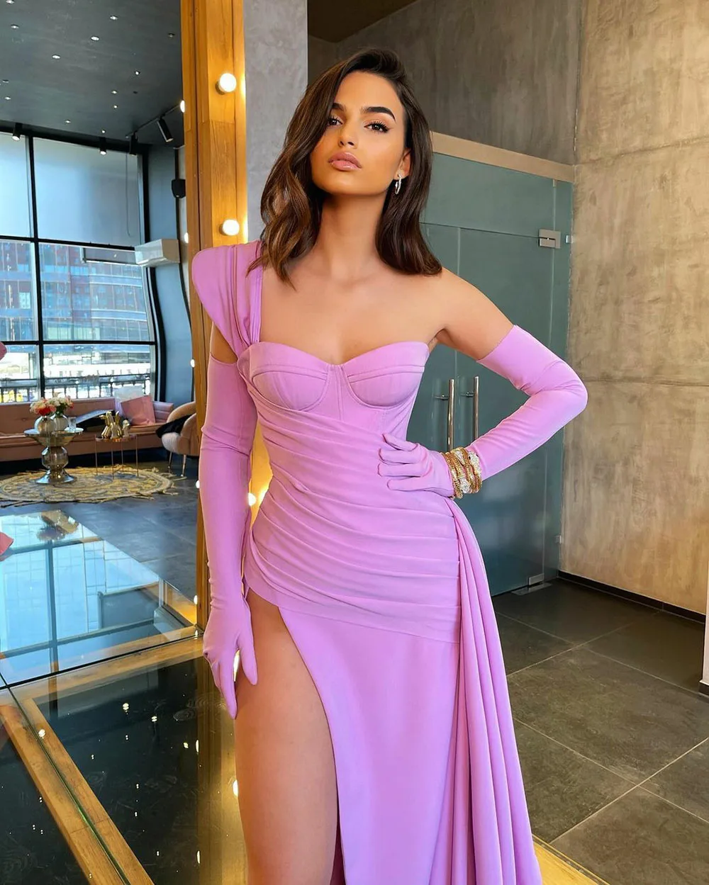 Женское вечернее платье с юбкой годе Sevintage, красное плиссированное платье с разрезом сбоку и одним открытым плечом, модный наряд без рукавов для вечерние