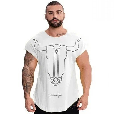 Новинка, Мужская футболка для тренажерного зала, фитнеса, бодибилди...