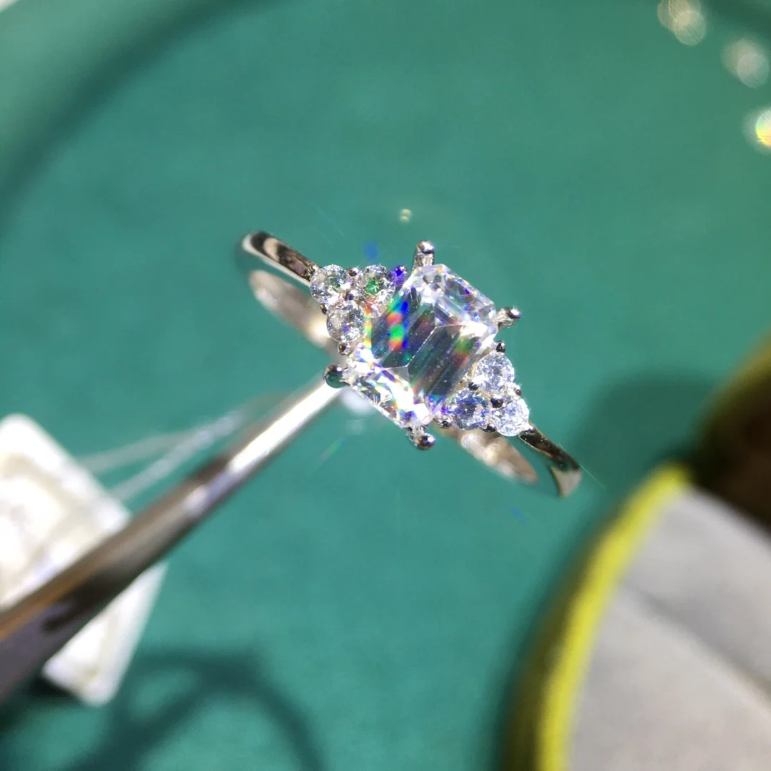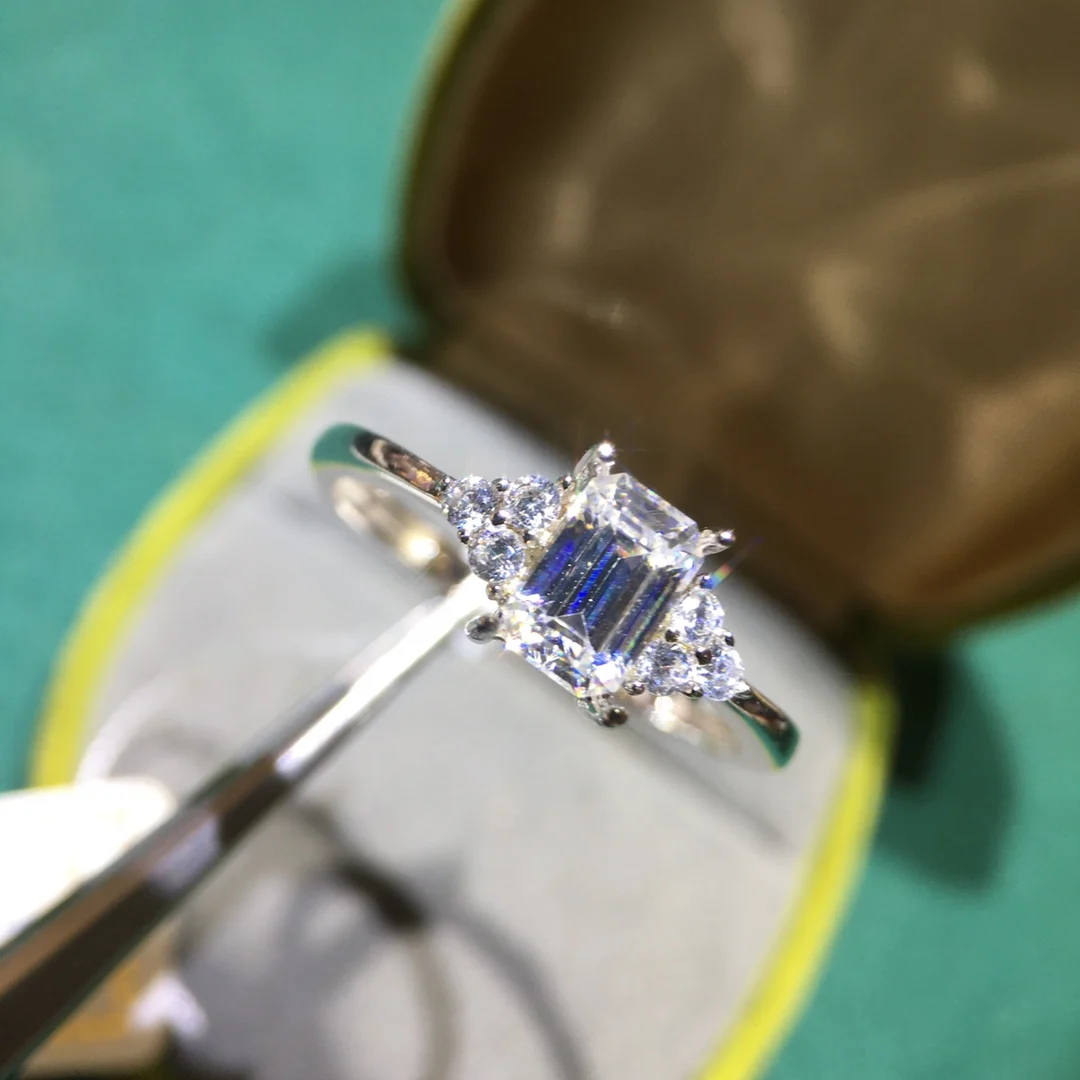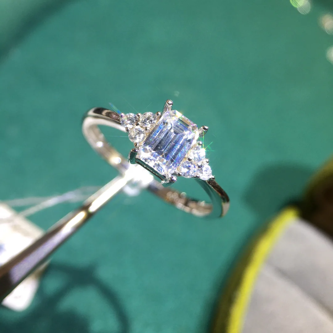 Кольцо принцессы из серебра 925 пробы, с изумрудной огранкой 1 карат