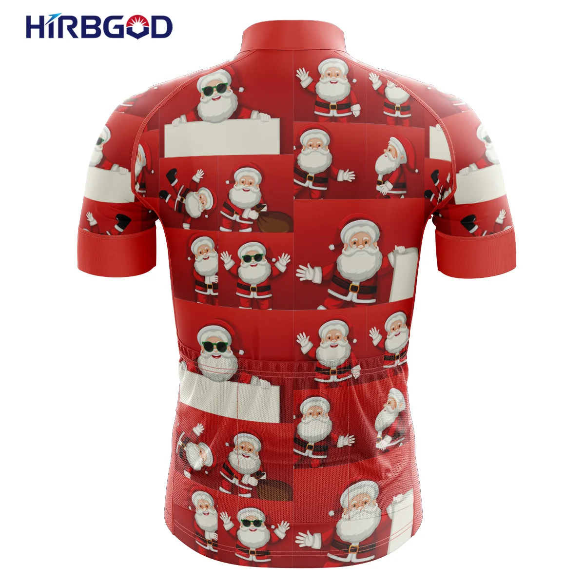 Мужская быстросохнущая велосипедная рубашка HIRBGOD, с короткими рукавами и карманами, с изображением Санта-Клауса, TYZ1148-01