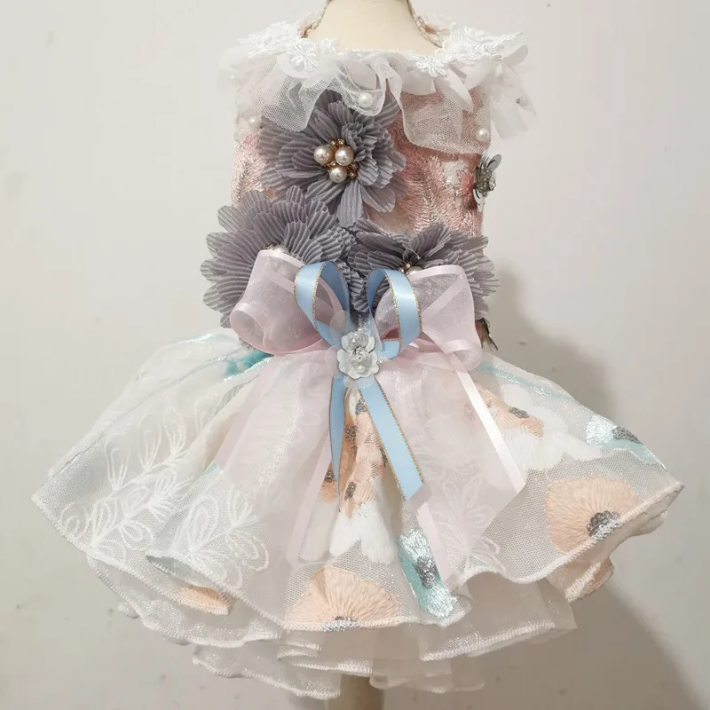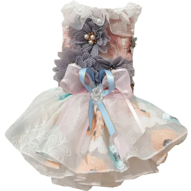 Новинка, оригинальное свадебное платье ручной работы с трехмерными жемчужинами и вышитыми цветами для щенков и собак, модная одежда для домашних животных, платья для собак, пальто