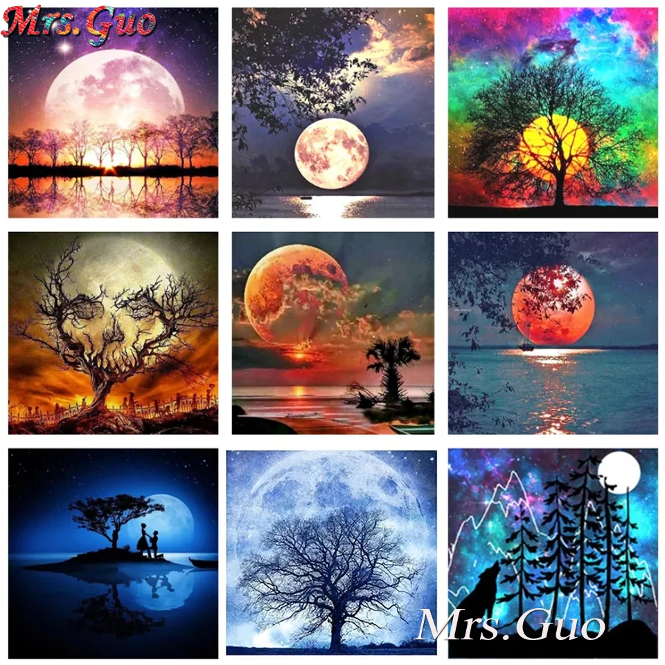 Луна Алмазная Картина Закат пейзаж Полный Круглый 5D DIY Алмазная вышивка пейзаж Алмазная мозаика Искусство домашний декор ремесла подарок