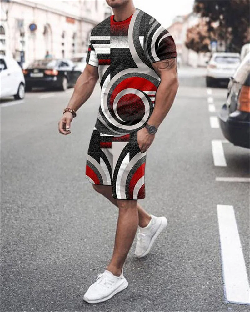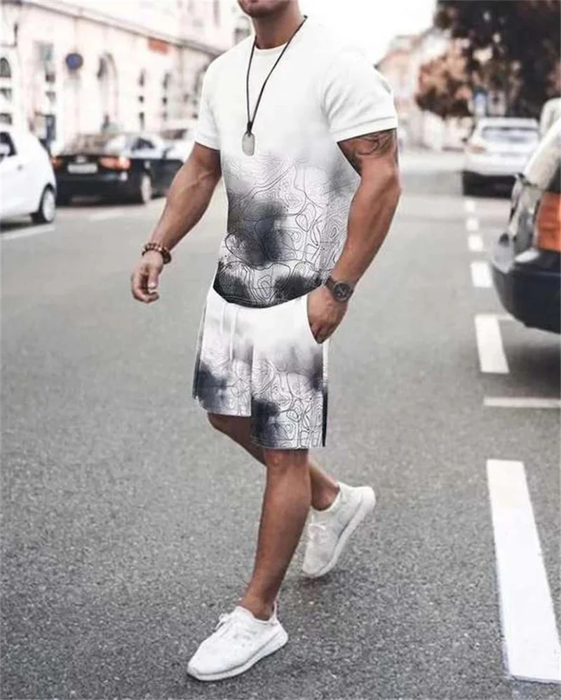 Костюм мужской Пляжный из 2 предметов, повседневный короткий костюм с принтом 3D, с принтом моря, Повседневная футболка с круглым вырезом