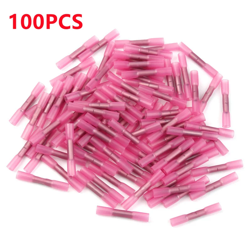 Термоусадочные трубки, электрические термоусадочные клеммы для стыковых обжимов, красные водонепроницаемые изолированные соединители для проводов, 100 шт.