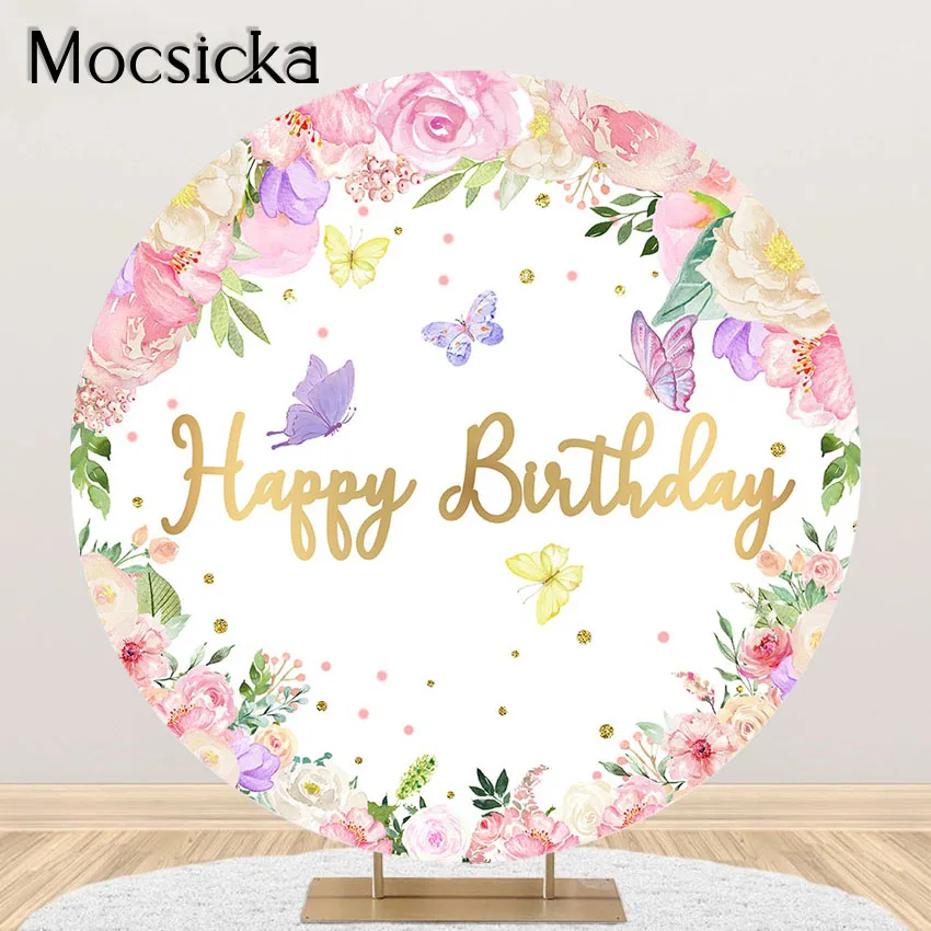 Mocsicka фон с бабочками для вечеринки в честь Дня Рождения Фея бабочки Цветочная принцесса круглая Обложка сад чайвечерние ринка фотосессия
