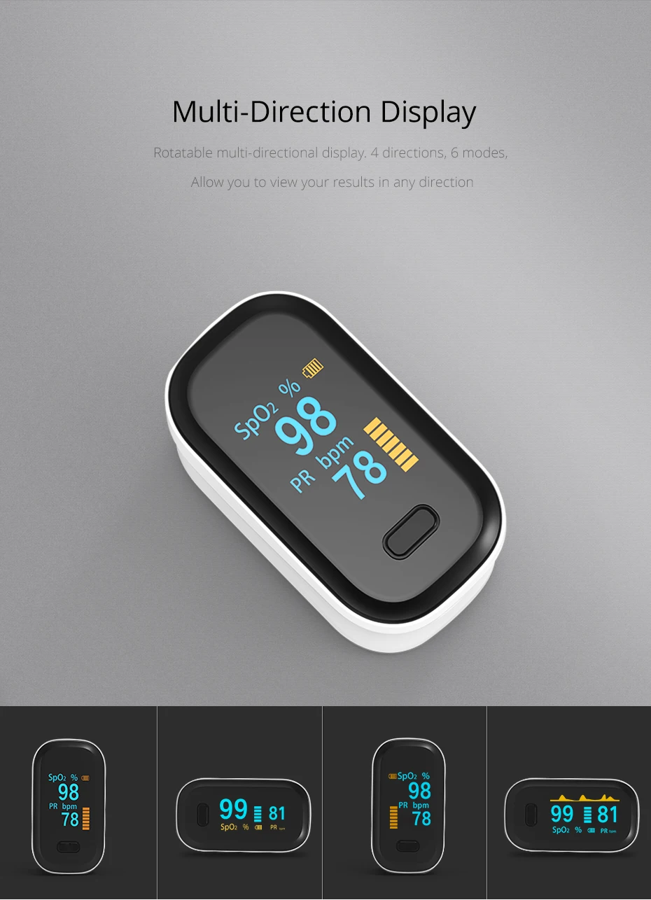 Особенности:1. Качественный oled-дисплей, 4 направления для чтения.2. Параметры: SPO2 (насыщенность пульса кислородом), PR (Частота пульса)3. Вес, портативный и простой светильник.4. Точное считывание, несколько секунд для получения данных.5. Автоматическое выключение в течение 8 секунд, когда нет сигнала.6. Подходит для занятий спортом на открытом воздухе, альпинизма, долгих рабочих часов и домашнего семейного здравоохранения.7. Подходит для пожилых людей, людей с проблемами дыхания или людей, которые часто любят спорт.Обратите внимание:Насыщение кислородом нормальной артериальной крови человека составляет 98%. Если он меньше 94%, он считается недостаточным источником кислорода. Кроме того, Частота пульса и частота сердечных сокращений у нормальных людей одинаковые. Обычно от 60 до 90 раз в минуту. Однако в случае физических упражнений и стресса сердцебиение может увеличиться.Упаковочный лист:-1 x Пульсоксиметр-Руководство пользователя на английском языке-1 шт.-Веревка-1 шт.-1 х сумка для хранения (в зависимости от того, Выбираете ли вы его)(Из-за авиационных ограничений батарейки AAA не входят в комплект)