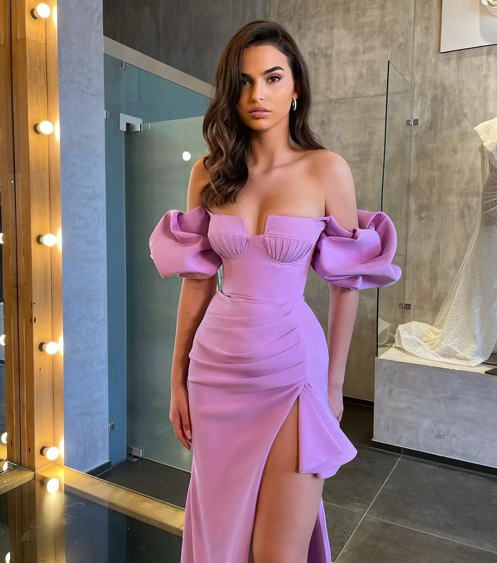 Женское вечернее платье с юбкой годе Sevintage, фиолетовое плиссированное платье с разрезом сбоку, пышными рукавами и рюшами для выпускного вечера