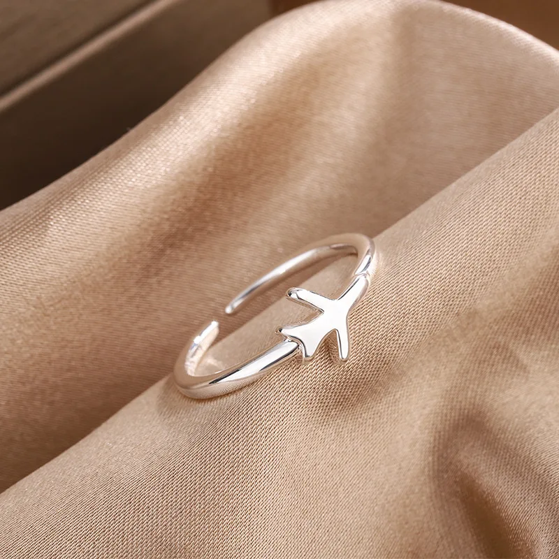 Милый модный мультяшный самолет серебряного цвета медная Регулируемая фотография для женщин простые корейские Ювелирные изделия Подарки