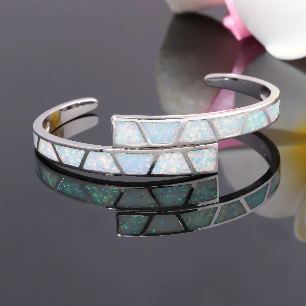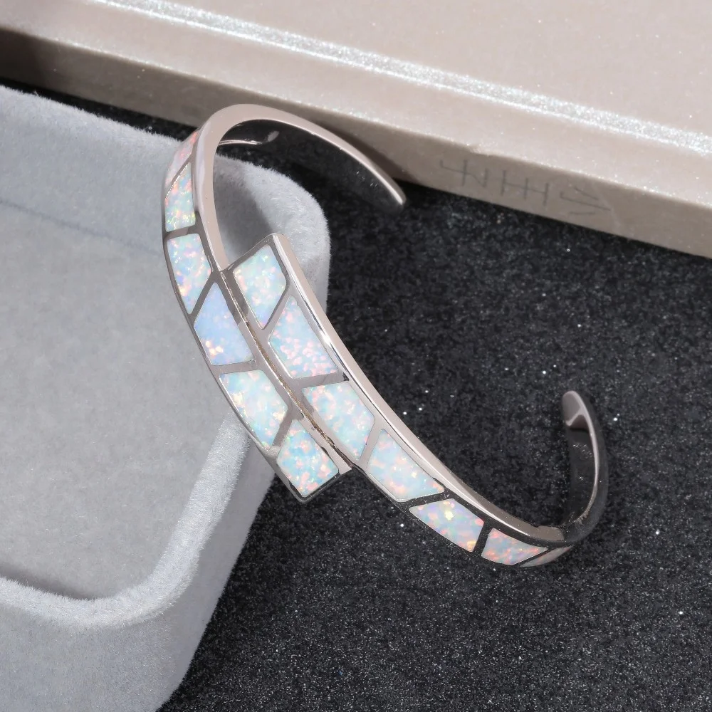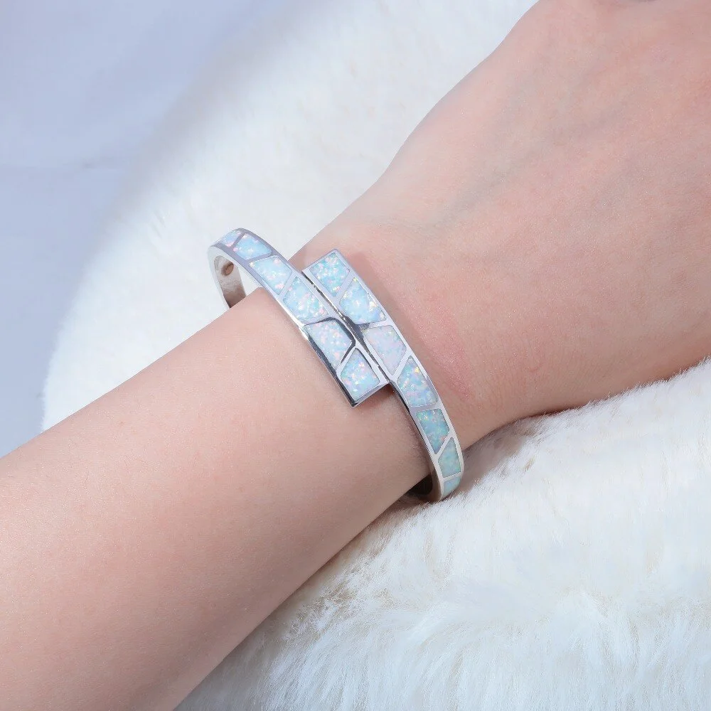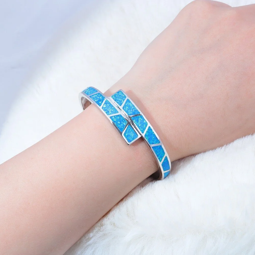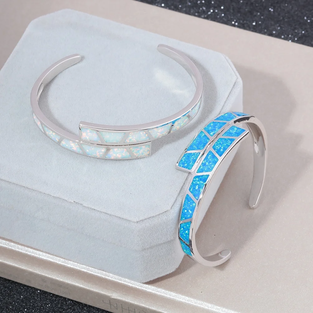 Модный женский оригинальный креативный браслет с голубым и белым огненным опалом, регулируемый двухслойный браслет, оптовая продажа