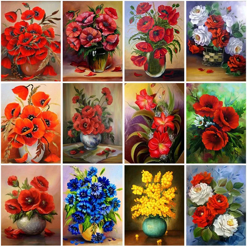 Алмазная картина сделай сам с маками, полноразмерная Мозаика из кру...