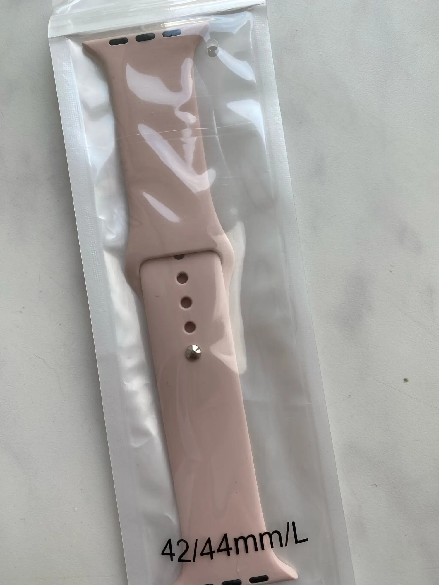 Ремешок отличный, приятный на ощупь, цвет нежно розовый, фото плохо передаёт цвет, в живую намного красивее. Всё как в описании. Продавец отвечал на всё вопросы, всегда шёл на контакт. Доставка достаточно быстрая, буквально недели 1,5-2. Товар однозначно рекомендую