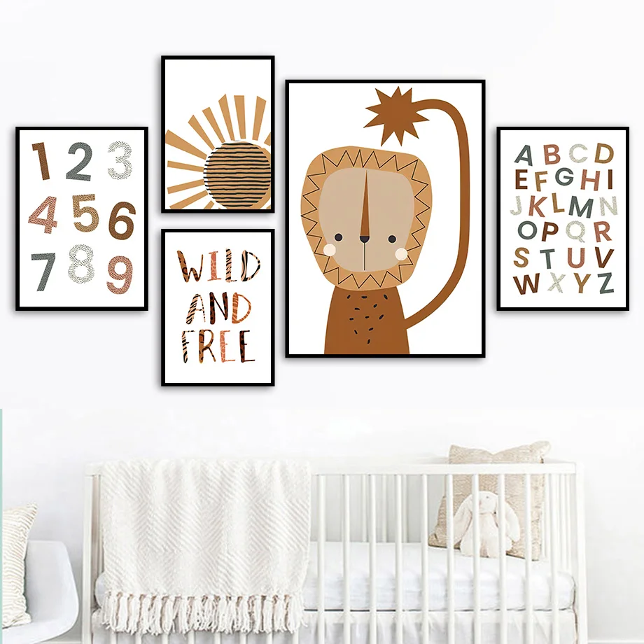 Настенная картина для детской комнаты с изображением Льва жирафа ка...