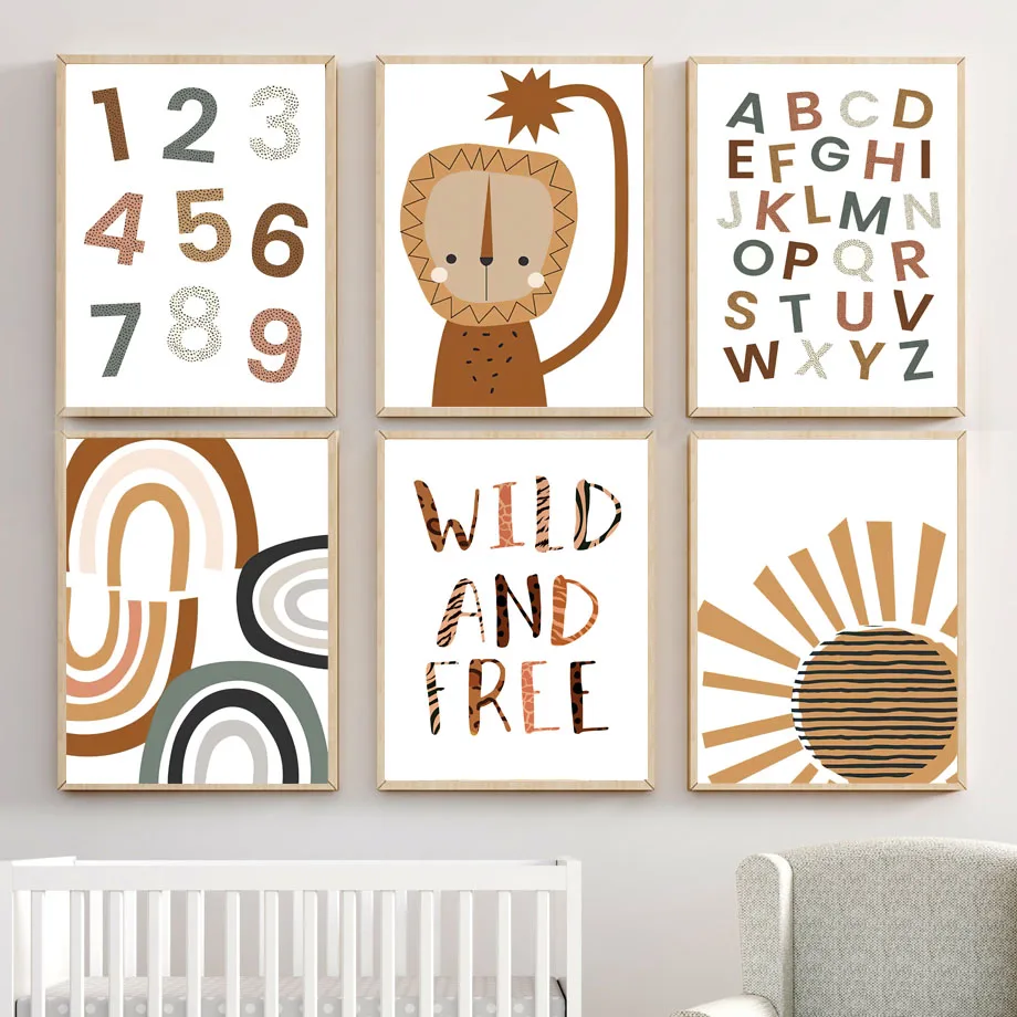 Настенная картина в стиле бохо, радуга, динозавр, любовь, алфавит, ...