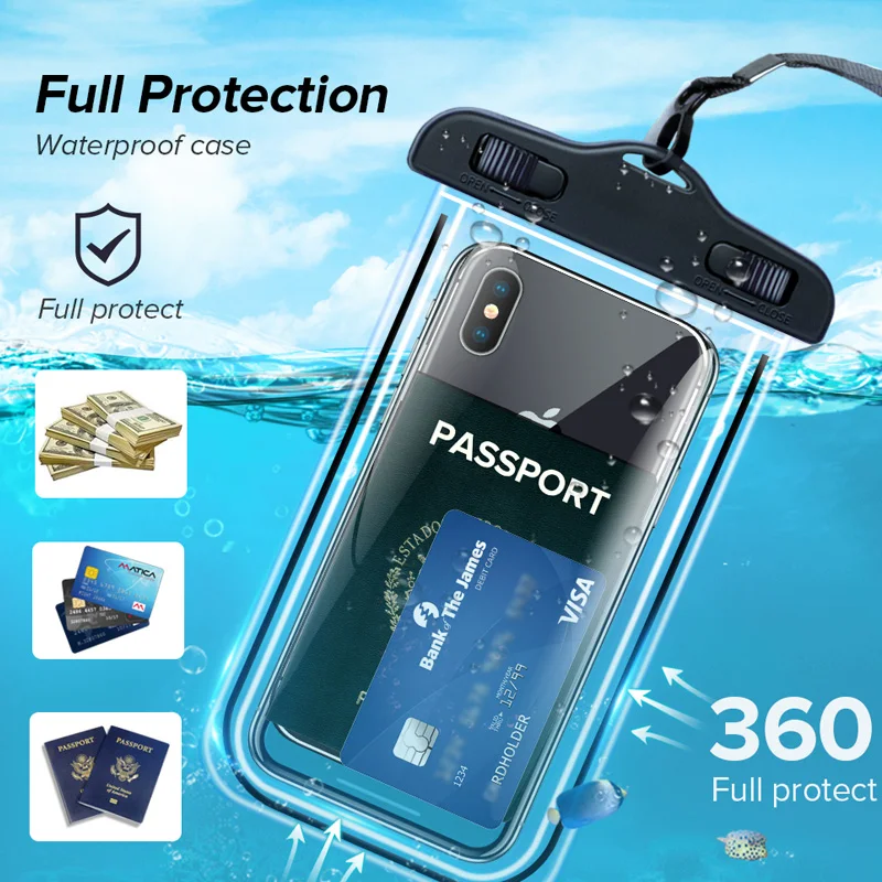 Прозрачный водонепроницаемый чехол для телефона IPX8, Универсальный Водонепроницаемый Чехол для телефона с сенсорным экраном, чехол для дайвинга и дайвинга