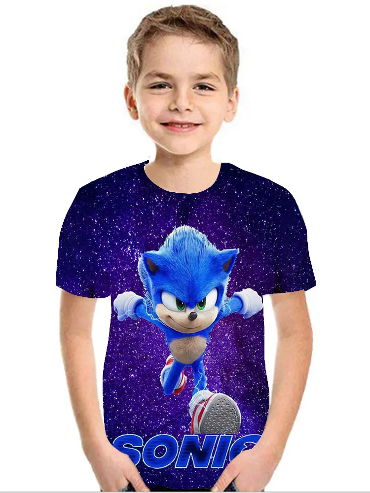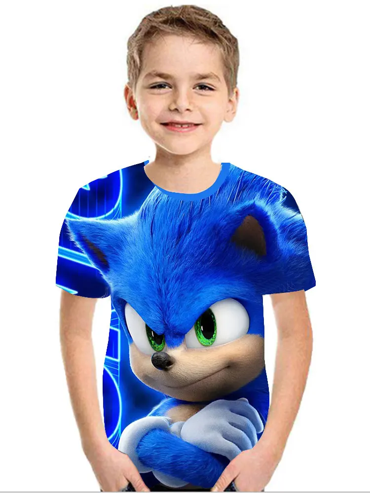 Летняя детская одежда Sonic с коротким рукавом, футболка, дышащая одежда для маленьких мальчиков, Детские топы для девочек, футболки, модная мультяшная 3d рубашка