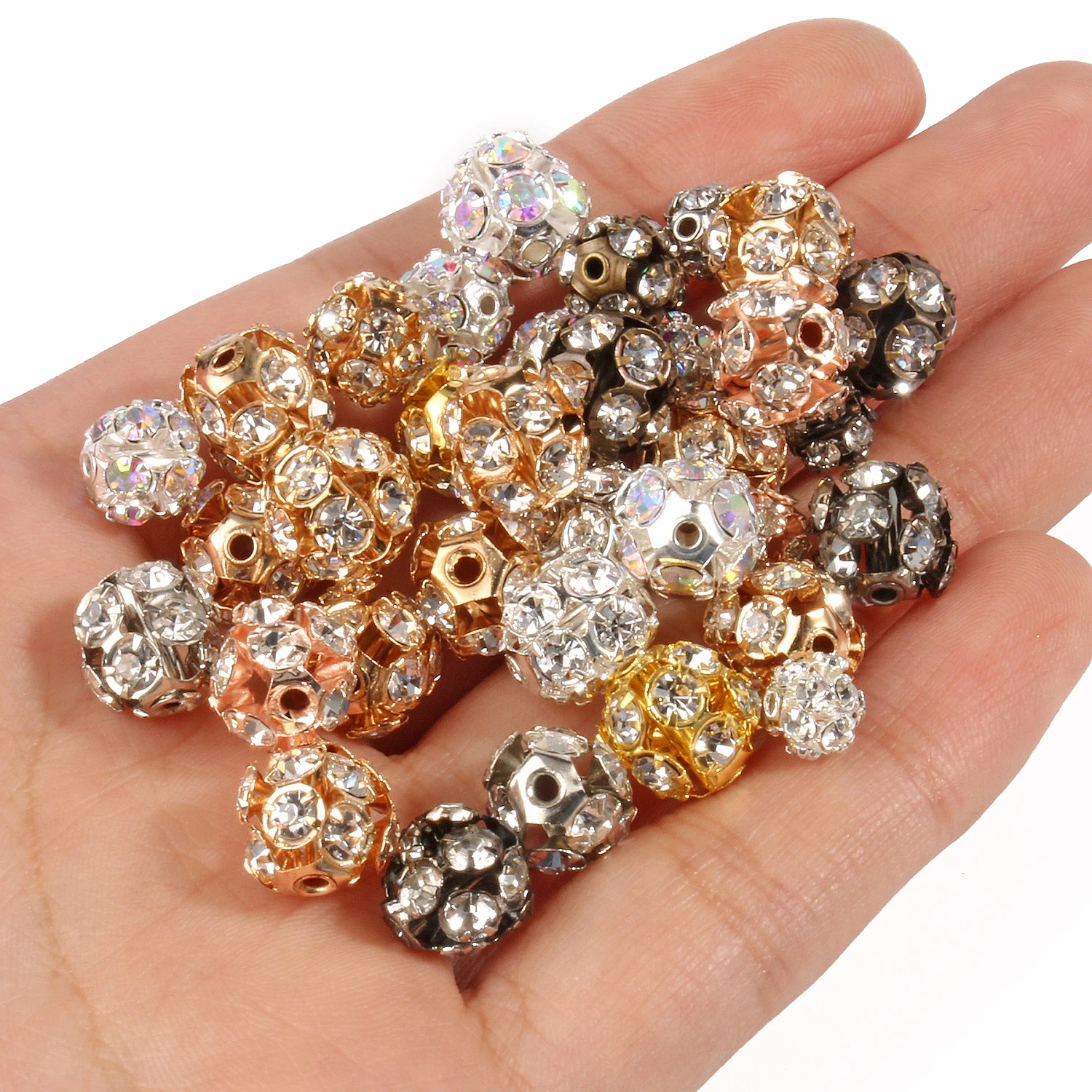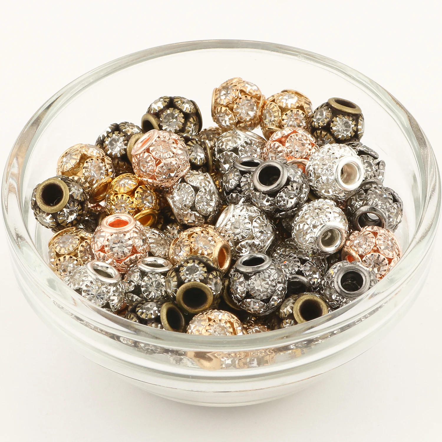 1pack Fashion Crystal Rhinestone Copper Beads Round Loose Spacer Beads For Jewelry Making Diy Bracelet Handmade Crafts Supplier