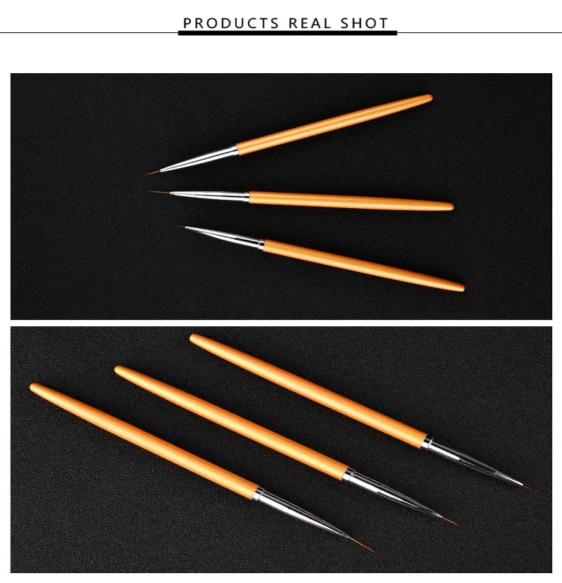 3 шт.компл. золотистая искусство для ногтей, искусственная ручка, кисть, профессиональный высококачественный УФ-Гель-лак, Типсы, 3D дизайн, инструмент для маникюра и рисования